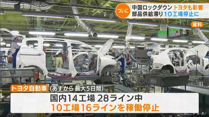 トヨタ自動車は、上海ロックダウンの影響で5月16日から21日にも国内8つの工場で稼働を一時止めています。