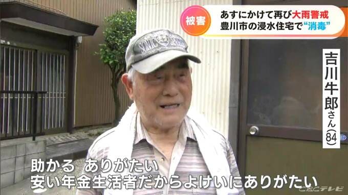 先日の大雨で浸水した、愛知県豊川市伊奈町に一人で暮らす吉川牛郎さん(84)。