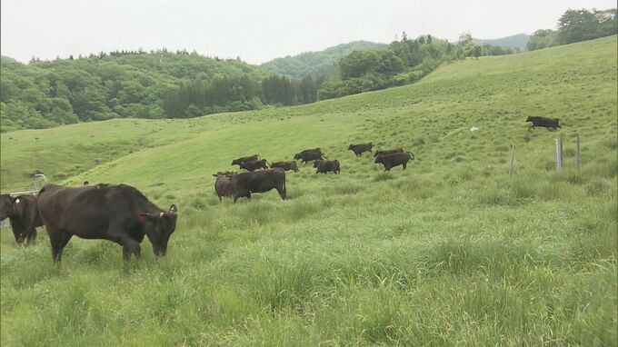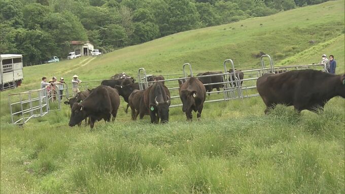 岐阜県高山市の牧場で、繁殖用の飛騨牛の放牧が始まりました。