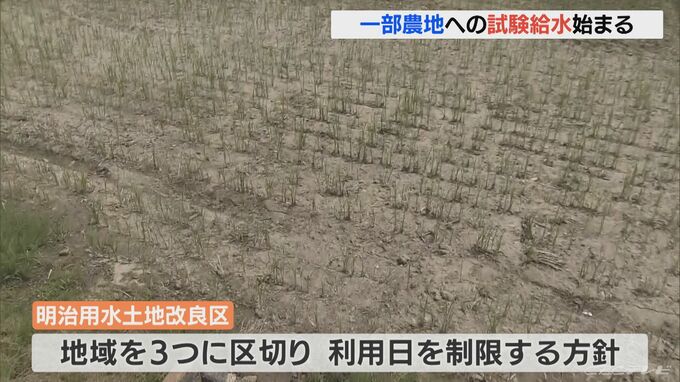 東海農政局は、5月中の本格的な給水再開を目指していますが、必要な量は確保できない見通しで、明治用水土地改良区では、地域を3つに区切り、利用日を制限する方針です。