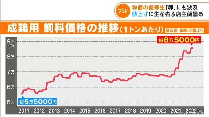 「原油価格の高騰によって、配送コストや(卵のパックなどの)放送資材費が高騰しています。値上げせざるを得ない状況です」