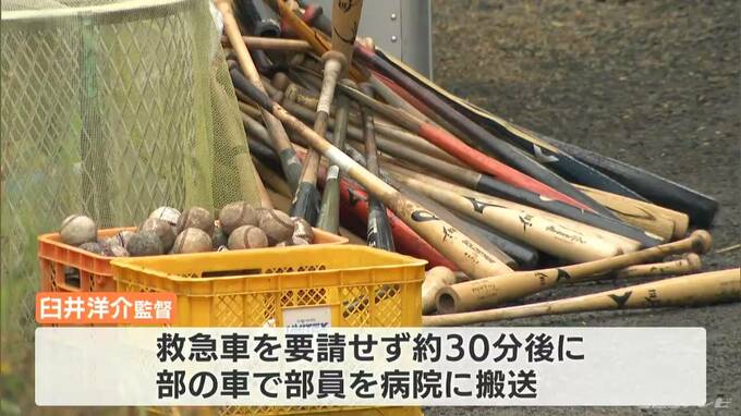 倒れた部員は当時、会話ができないほど、重い熱中症の症状がありましたが、臼井洋介監督は救急車を要請せず、およそ30分後に、部の車で部員を病院に運んだということです。