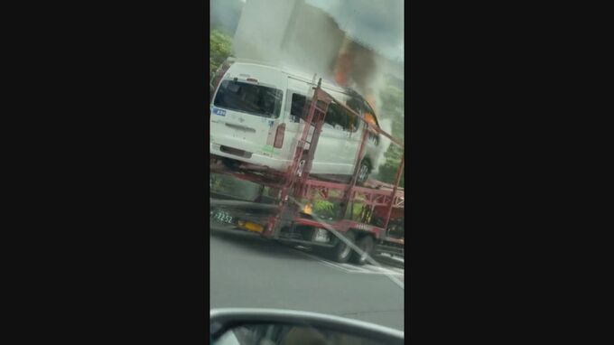 キャリアカーに積まれたワンボックスカーから出火 キャリアカーを運転していた男性が火を消そうとして手にやけど 名古屋・緑区 2023年6月23日(金) 20:15 国内 23日午後2時半ごろ、名古屋市緑区別所山でキャリアカーに積まれたワンボックスカーから火が出て、119番通報が相次ぎました。消防車など16台が出て火はおよそ2時間後に消し止められましたが、ワンボックスカー1台と…