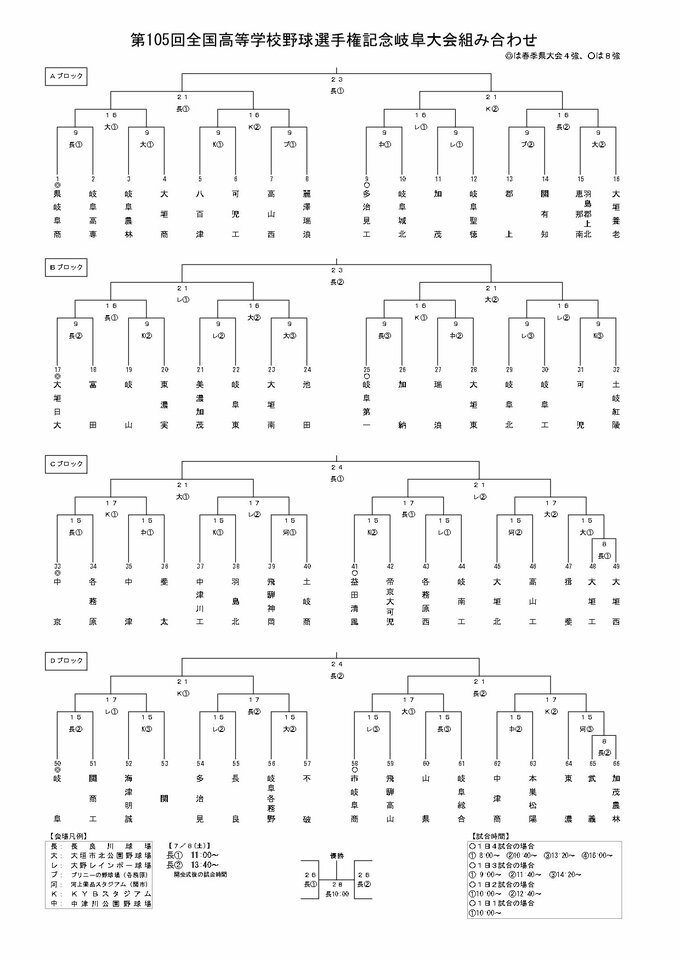 夏の高校野球 岐阜大会の組み合わせが決定 開幕は7月8日 2023年6月24日(土) 16:19 岐阜 夏の甲子園への出場をかけた、高校野球岐阜大会の組み合わせが24日に決まりました。 今年の大会には66チームが参加。大会は7月8日に開幕し、決勝は7月28日の予定です。