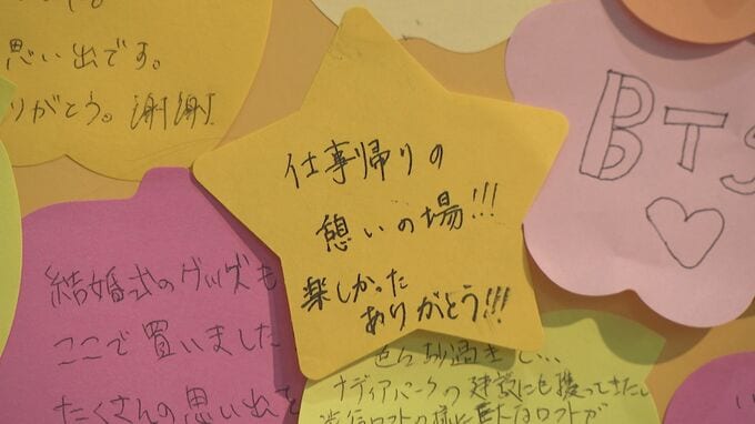 「ロフト名古屋・よみがえるメモリアル」と題して、これまでの販売促進グッズや写真などを展示。また、お客さんが書いた感謝やお別れのメッセージも飾られ、閉店を惜しむ人たちの姿が見られました。