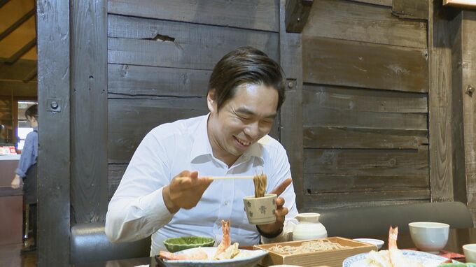 「きょうはめちゃくちゃ暑い。もう無理です、そばが食べたかったです、きょうは。(すすった後)うまい!」