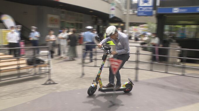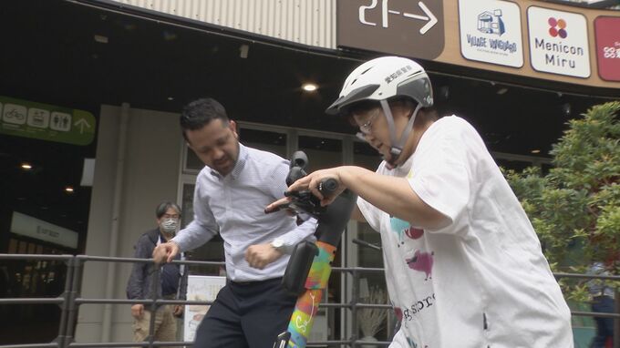 1日、名古屋市中区の商業施設で行われた試乗会で、初めて電動キックボードに乗った人たちは……