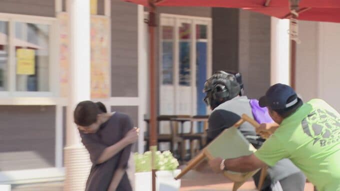 愛知県美浜町の南知多ビーチランドで4日行われた訓練は、刃物を持った不審者が、客を切りつけたという想定で行われました。