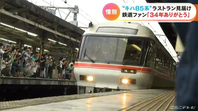 「ワイドビューひだ」で活躍したキハ85系のラストラン 「エンジン音がほかと全く違う」 ファン歴45年の男性が見送った最後の雄姿 高山~名古屋の特別列車 2023年7月10日(月) 17:55 国内 名古屋と高山を結ぶ特急車両として親しまれ、多くの人に愛された「キハ85系」が、9日に34年の幕を閉じました。ラストランを見届けようと駅や沿線には多くの人が集まりました。(鉄道ファン)「桑名からきた。最後…