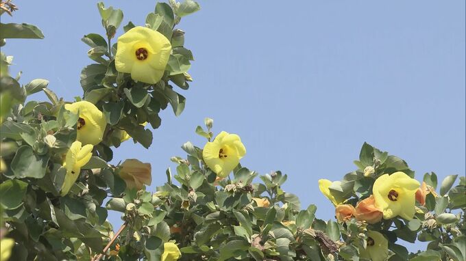 県の“絶滅危惧種”で天然記念物にも指定 ハマボウの花が見頃 愛知・田原市 2023年7月10日(月) 18:56 国内 愛知県の絶滅危惧種に指定されている花が見頃を迎えています。青空の下で咲く鮮やかな黄色の花、「ハマボウ」です。県の天然記念物に指定されている田原市堀切町の野生地では、高さ3メートルあまりのハマボウが鮮…