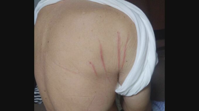 男性の背中には縦に4本、クマの爪痕がくっきり残されています。男性は右肩の骨にひびが入るけがをしました。