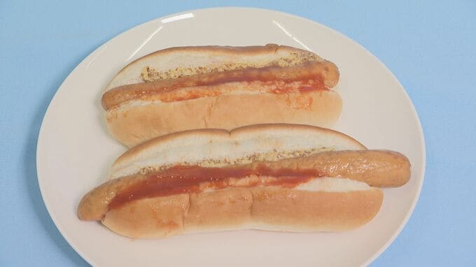 人気のホットドッグはソーセージの重さが約49パーセント増の225円。