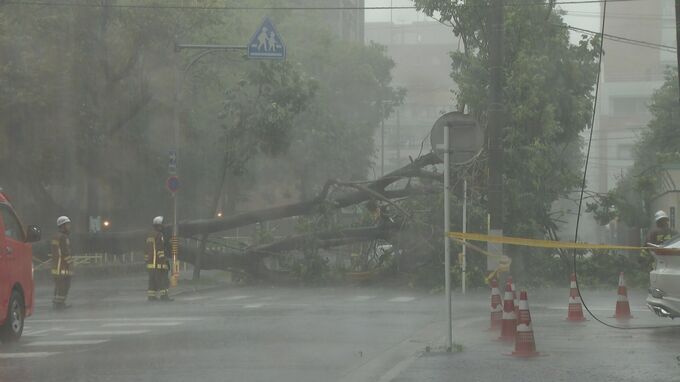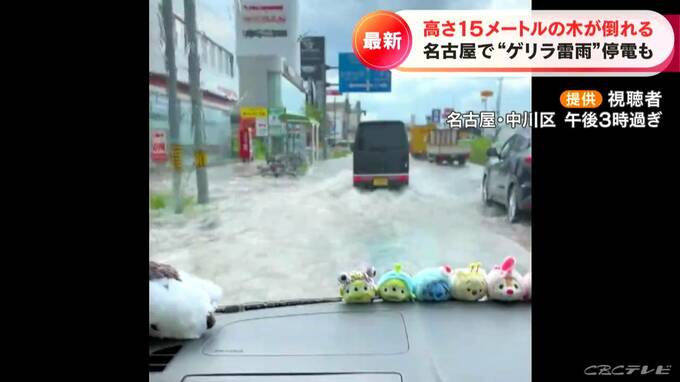 名古屋の中土木事務所によりますと、倒れた木は「シンジュ」という種類。倒木があった時間は、雷や雨が激しくなっていて、その影響とみられています。