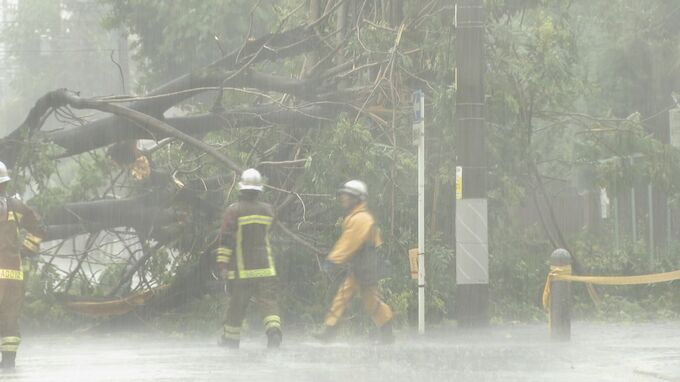 名古屋市中区の千早公園では午後3時15分ごろ、高さ15メートルほどの木が倒れ、フェンスや街路樹をなぎ倒しました。