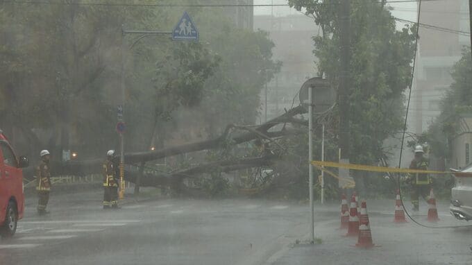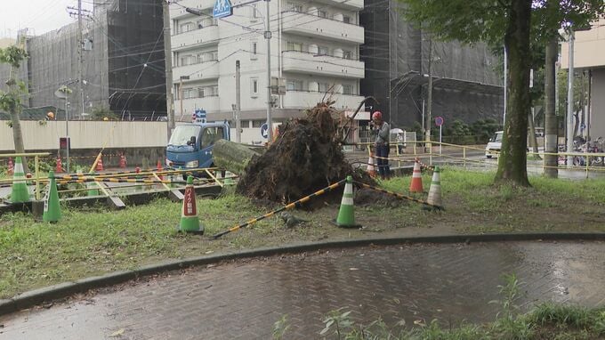 12日、名古屋市中区の公園で高さ約15メートルの木が倒れました。