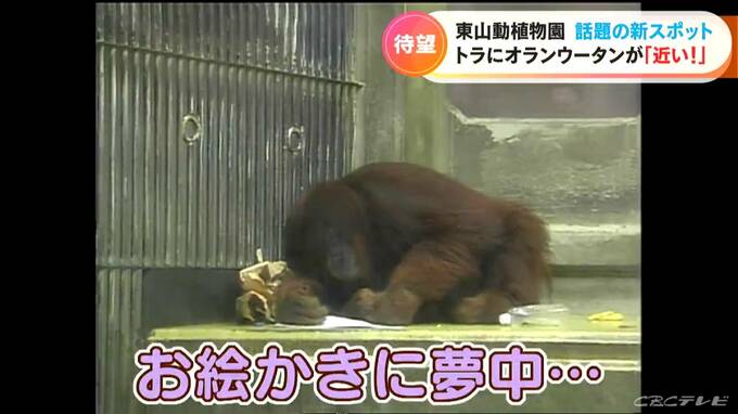 こちらは2006年に22歳の「アキ」が「お絵描き」に夢中になっている様子です。知能の高さが知られる「オランウータン」。いずれ新エリアで「アキ」と再会できるのが楽しみです。