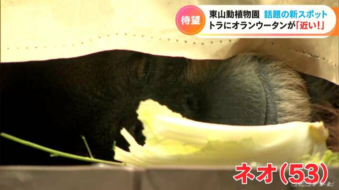 メスの「ネオ」は53歳。園内での引っ越しは50年前に1回経験していますが、飼育スタッフは環境が変わることに神経をとがらせ、14日のオープンを迎えました。