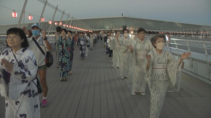 中部空港のスカイデッキで、盆踊りを楽しむイベントが4年ぶりに開かれました。