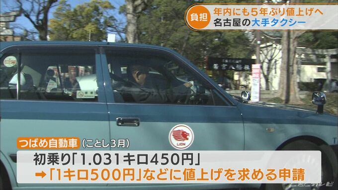 中部運輸局によりますと、名古屋のタクシー最大手「つばめ自動車」はことし3月、初乗り「1.031キロ450円」を「1キロ500円」などとする、運賃改定の申請を行いました。