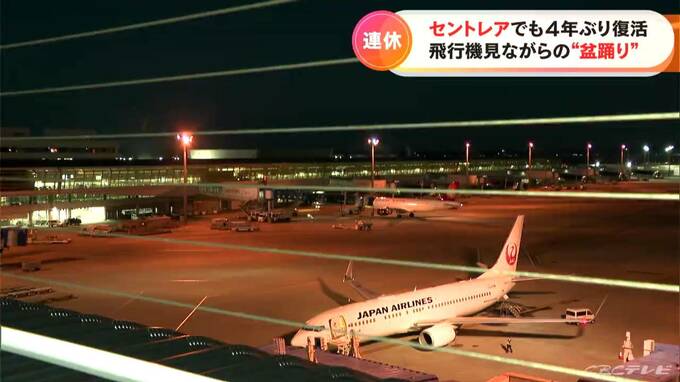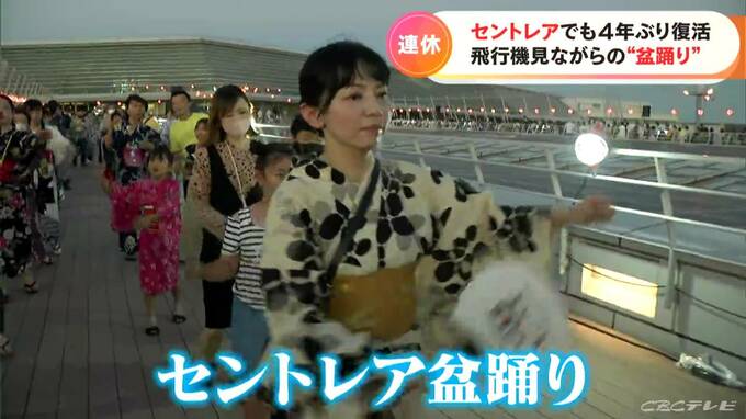 こちらも4年ぶりの開催です。16日に愛知県常滑市の中部空港で開かれた「セントレア盆踊り」。飛行機を眺めながら、スカイデッキに特設されたやぐらの周りを踊ります。