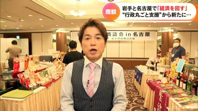 「このホテルにはいま岩手県のおいしいものが大集合しています。カキの佃煮、ワインラーメンも。きょうは名古屋市内などのバイヤーが集まって商談会が行われています」