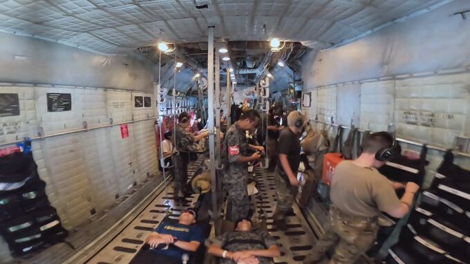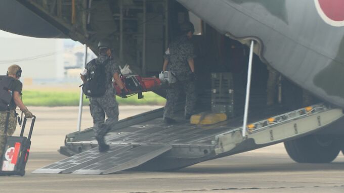 一方、C-130H輸送機では医療機器や患者の配置を確認し、態勢が整うとすぐに機内へ。