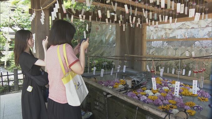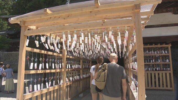 暑さを忘れる涼しげな風鈴の音… 境内や軒先に2000個の風鈴 岐阜・高山市で「桜山風鈴まつり」 To view this video please enable JavaScript, and consider upgrading to a web browser that supports HTML5 video 2023年7月23日(日) 17:11 岐阜 岐阜県高山市の櫻山八幡宮では「桜山風鈴まつり」が開かれています。 神社の境内や周辺の店舗の軒先などには、あわせて約2000個の風鈴が飾られ、訪れた観光客らは涼しげな音色を楽しんでいました。 風鈴まつりは8月26日まで行われています。