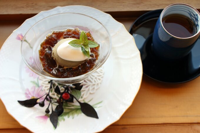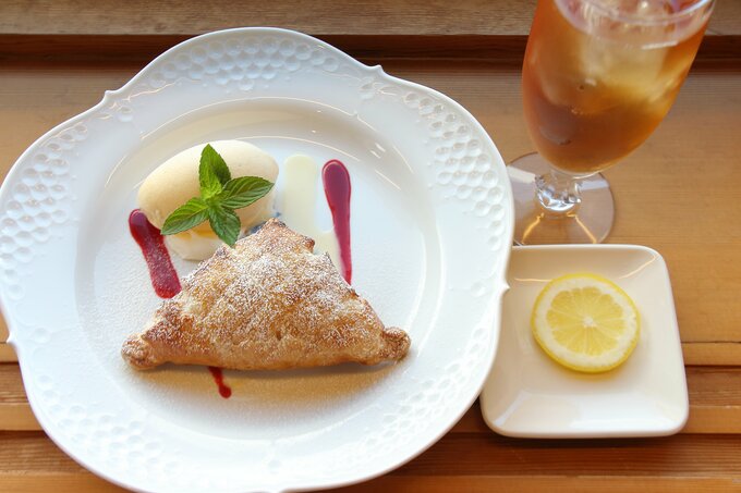 午後のおやつは藤井聡太七冠、が「ニトリ観光果樹園 特製アップルパイ バニラのアイスクリーム添え」と「アイスレモンティー」、佐々木七段が「黒糖風味の豆乳プリン コーヒーゼリー ほうじ茶のアイスクリーム添え」と「ほうじ茶」でした。