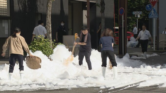 「泡を外に放出しようと思ってシャッターを…」 駐車場からあふれ出した泡が道路一面に 暑さで機械が誤作動し消火剤が噴出したか 名古屋・中区 2023年7月25日(火) 18:09 国内 25日朝早く、名古屋市中区でビルの駐車場から泡状の消火剤が噴き出し、道路まで広がりました。機械の誤作動だとみられていますが、実は名古屋の都心では以前も同じようなことが起こっていました。25日午前8時前、…