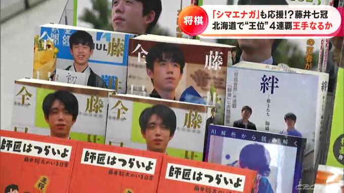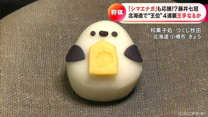 藤井七冠が対局するとあり、大型書店では特設コーナーが用意され、老舗和菓子店では北海道に生息する野鳥「シマエナガ」が将棋の駒を持って応援!