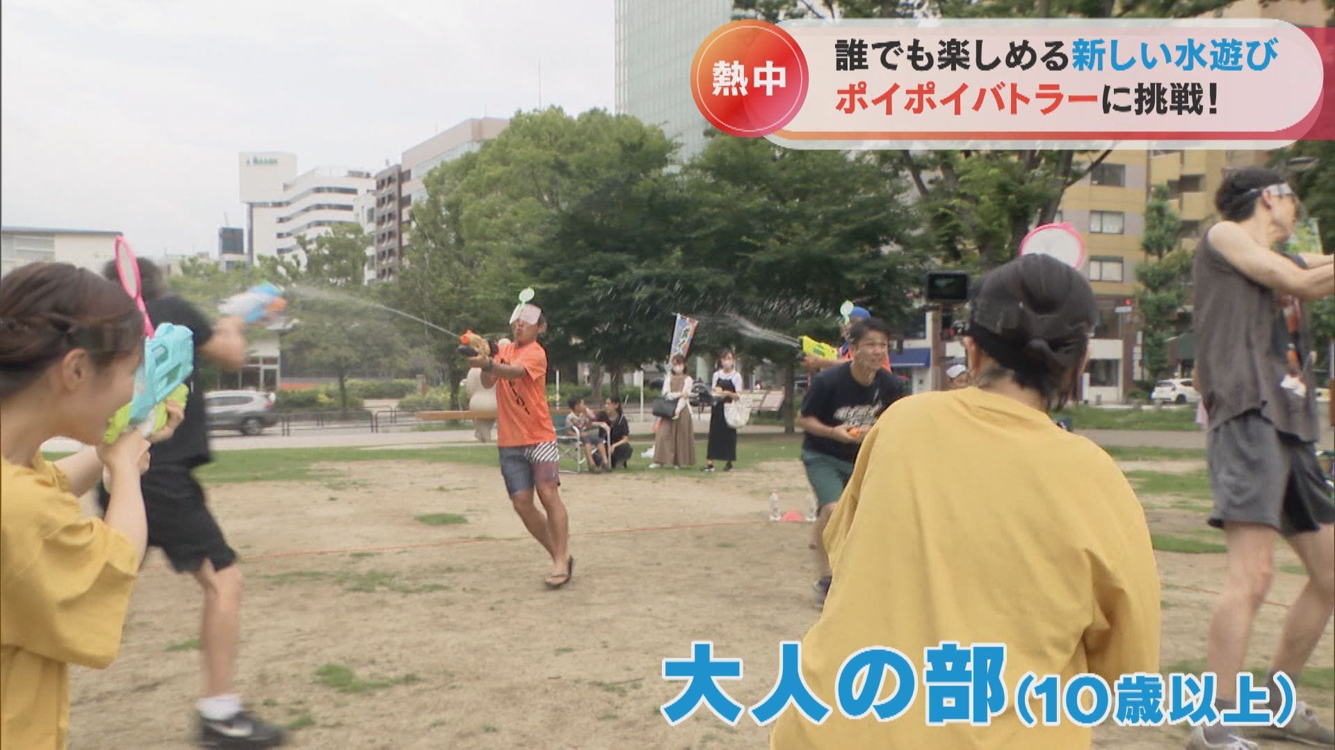 そんな時、対戦チームの相手メンバーの水鉄砲に水が無くなりました。無防備になるのが、この給水のタイミング。いつもはおっとりしている斉藤アナ、この機を逃さず電光石火の攻撃!なんとか1ポイント獲得することができました。