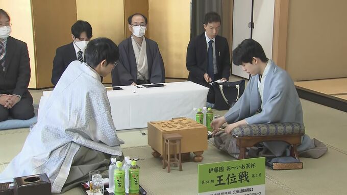 25日から北海道・小樽市の老舗旅館「銀鱗荘」で行われていた王位戦第3局は、26日午後7時ごろに先手の藤井聡太七冠が131手で、挑戦者の佐々木大地七段に勝ちました。