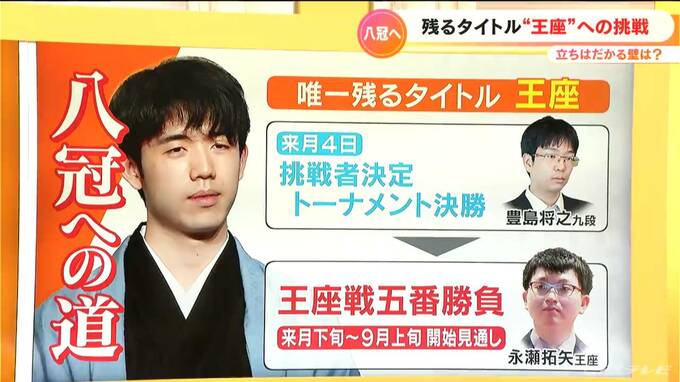 そこで勝ちますと、8月下旬から9月上旬ごろに始まる見通しの「王座戦五番勝負」で永瀬拓矢王座に挑戦することになります。