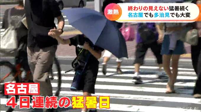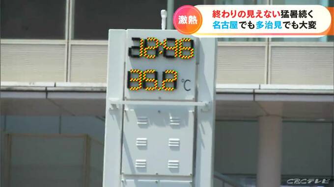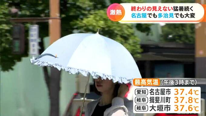 午後3時までの最高気温は名古屋市で37.4度となったほか、岐阜県揖斐川町で37.8度、岐阜県大垣市で37.6度など、各地でうだるような暑さとなりました。