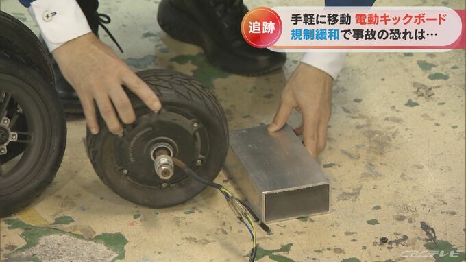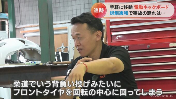 「(電動キックボードの)多くは、8インチや6インチのホイールが付いている。その場合、コンビニに車道から上がる段差が5センチや4センチあるんですが、段差を乗り越えるときにつんのめってしまうことも起こりえる」