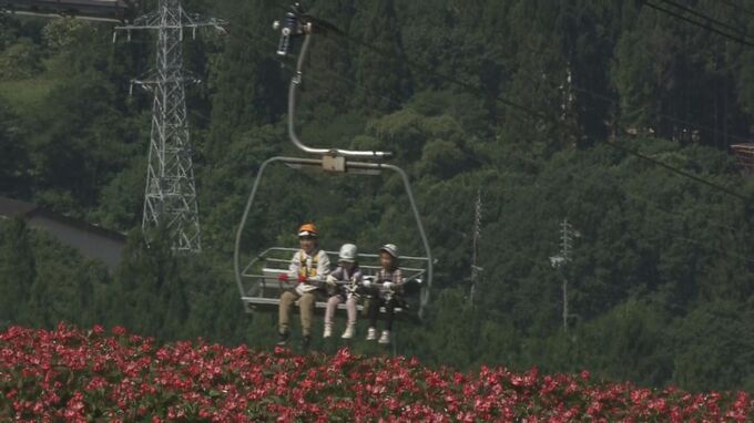 開花時期が長い「ベゴニアビッグデラックス」が辺り一面咲き誇る様子は、まるで真っ赤なじゅうたんのようです。リフトに乗って訪れた人たちが、記念写真を撮ったり、テラスから一面の絶景を楽しんだりする姿が見られました。