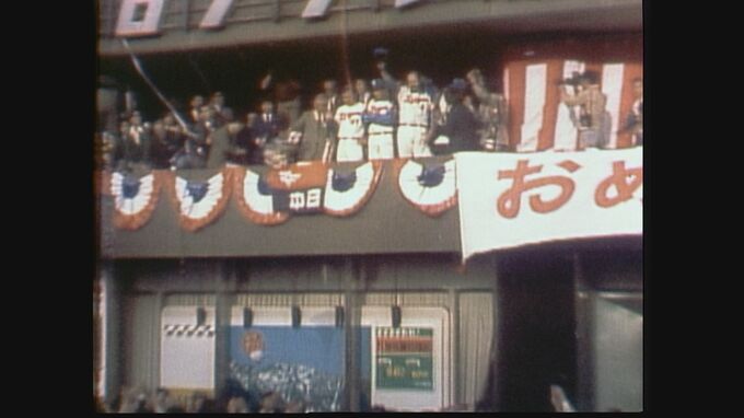 1974年には中日ビルに選手も集結し、ドラゴンズのリーグ優勝を祝いました。