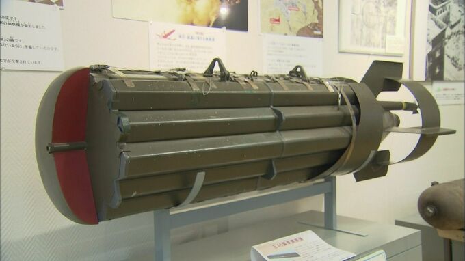 日本への空襲に使われた「焼夷弾」という爆弾。六角形の筒型爆弾を38本束ねた物が投下され、上空1500メートルで一斉に分散。着弾すると引火性の高い油が炸裂し周囲を焼き尽くします。木造家屋が多い日本を攻撃するため、アメリカ軍が開発した新兵器でした。