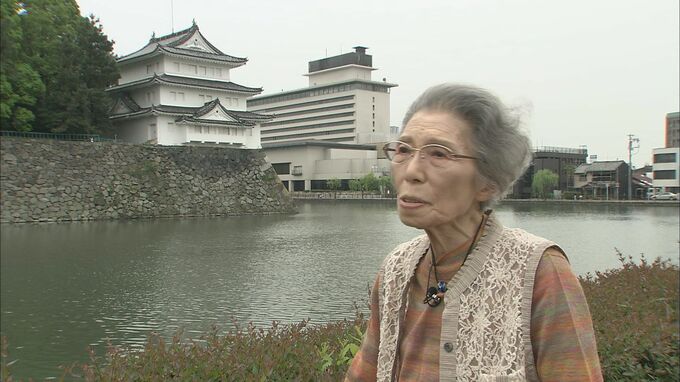 その一部始終を見ていた人がいます。城の真向かいに住む牛田壬子(うしだ・よしこ)さん88歳。当時17歳だった牛田さんは、その日の朝に始まった空襲から逃げようと、城のお堀の中へ飛び込みました。