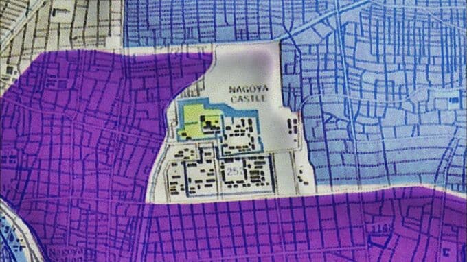 ところが中心部には白い空白地帯があります。名古屋城の場所と重なります。