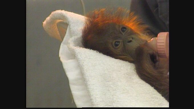 「アキ」は絶滅危惧種に指定されているスマトラオランウータンのメスで1984年9月に東山動植物園で生まれました。