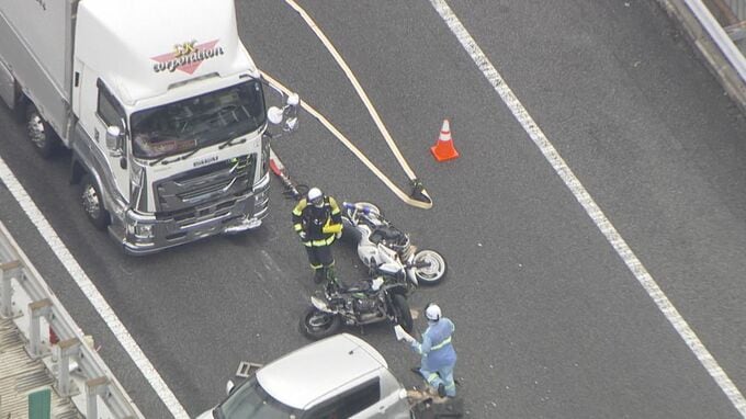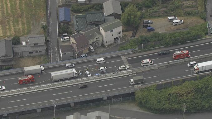 警察によりますと7日午前10時前、東名高速道路下り線の小牧インターチェンジ近くで、「車とバイクなどが絡む事故があった」と通報がありました。