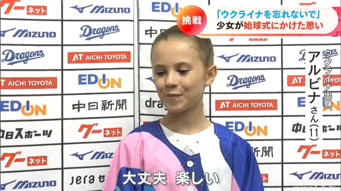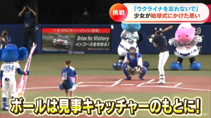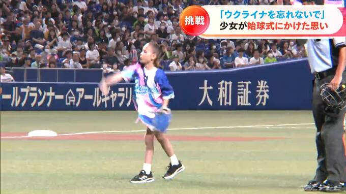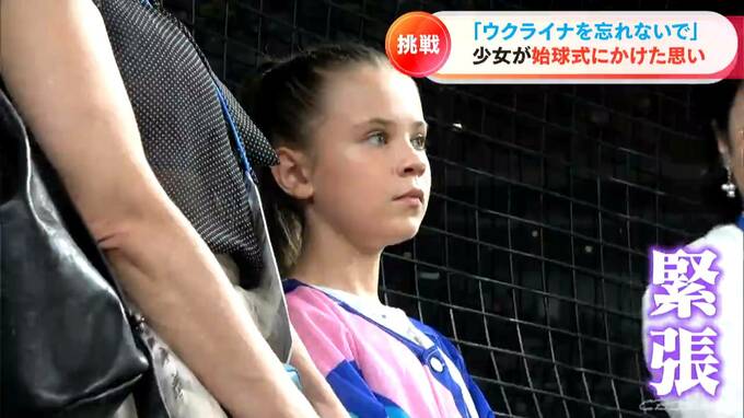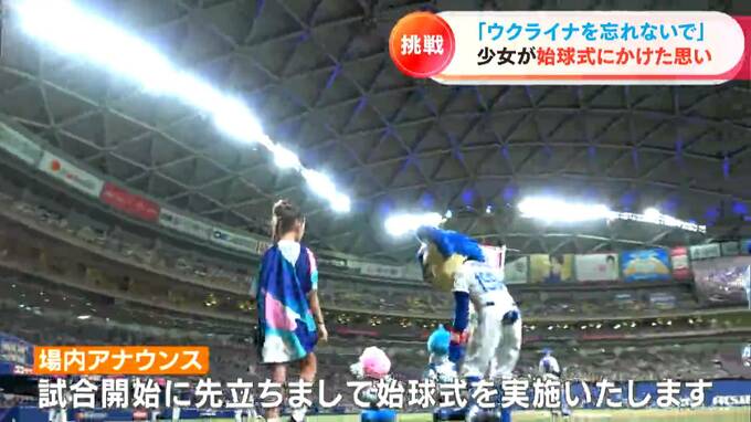 (アナウンス)「始球式を実施致します。投手を務めるのは、ウクライナ出身の小学生 アルビナ・デルカッチさん」
