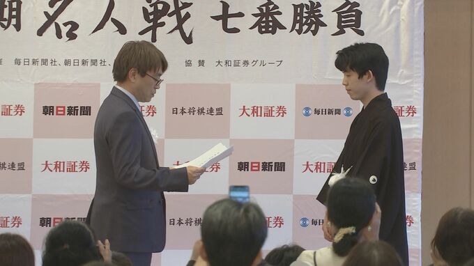 7日行われた「名人就位式」で藤井七冠に推載状(すいたいじょう)を贈ったのは、史上初の七冠達成者、羽生善治将棋連盟会長でした。