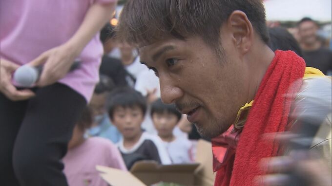 多くの人で賑わう中、全身「金色タイツ」姿で異彩を放っていた1人の男性が、この夏祭りを企画した坂口輝光さん(41)。