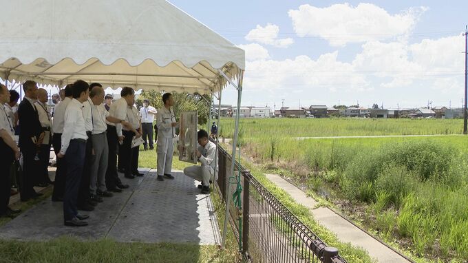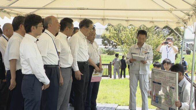 10日は斉藤鉄夫国交大臣が整備予定地の視察に訪れ、県の担当者から近くに県営名古屋空港や高速道路などの交通インフラがあってアクセスがいいことや、大地震による液状化や津波の恐れがなく、被災リスクが低いことなどについて説明を受けました。