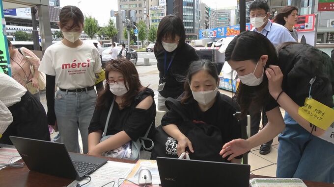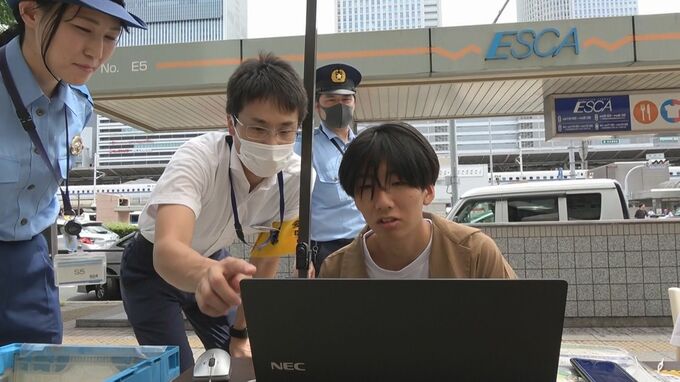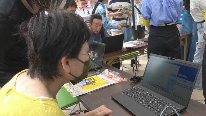 中村警察署管内ではことし6月末までに8件の被害があり、8月8日には中村警察署の警察官や大学生のサイバーボランティアなどが名古屋駅近くのビックカメラ入口で被害の実態と対処法を伝えました。