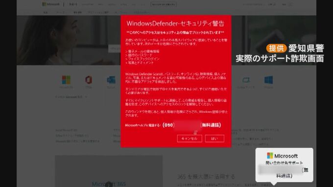 「実際、警告画面に出た連絡先に連絡して、コンビニで電子マネーを買わされるなどの被害が出ている。焦らずに、まずは落ち着いて、警察に連絡してほしい。絶対に連絡先には連絡しないこと、怪しい振り込みには応じないことをお願いしたい」