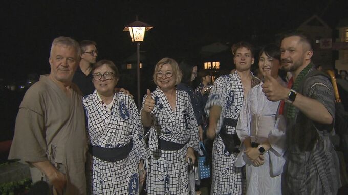 コロナ禍で、中止が続き去年は時間を短縮しての開催だったため、通常開催は4年ぶりです。午後8時に始まり、雨が降る時間もあった中、地元の人や観光客らが手拍子や下駄の音を響かせながら踊りを楽しみました。