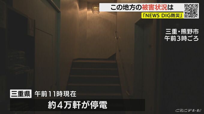 このほか三重県内では約4万軒が停電しています。